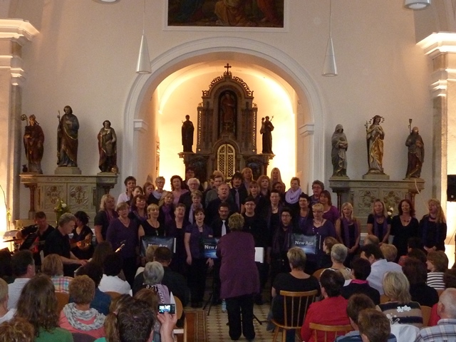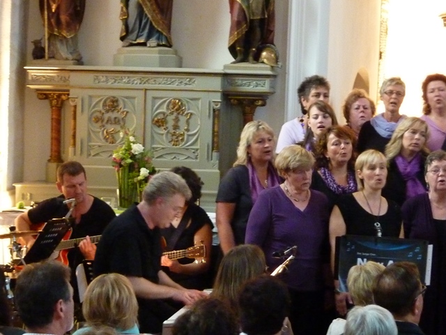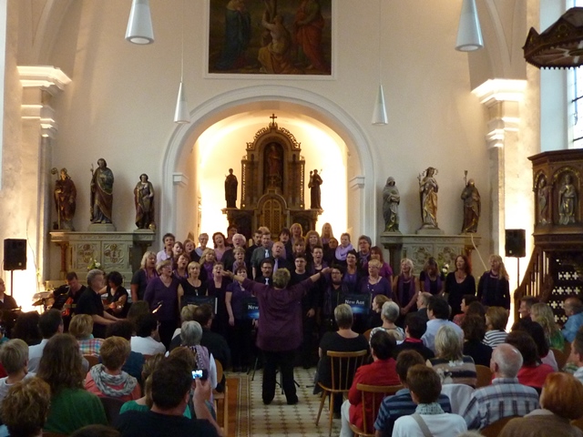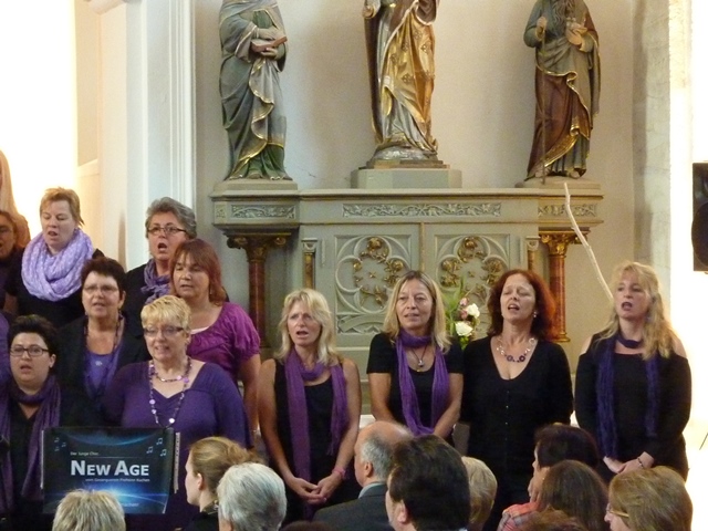 Das vollbesetzte Kirchengebäude aus dem 15. Jahrhundert gab zusammen mit den Sängerinnen und Sänger ein grandioses Bühnenbild ab. Die Akustik in der Kirche war regelrecht geschaffen für den modernen Chorgesang. Unter dem Motto „Church meets Pop & Gospel" begeisterte New Age in gewohnter Weise mit einer Kombination aus Popsongs und Gospels, aber auch mit deutschen und afrikanischen Liedern die Zuhörer.