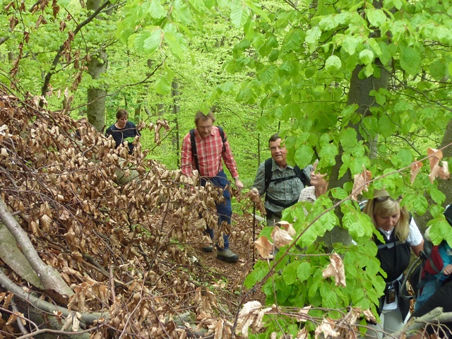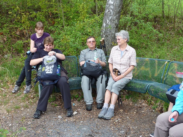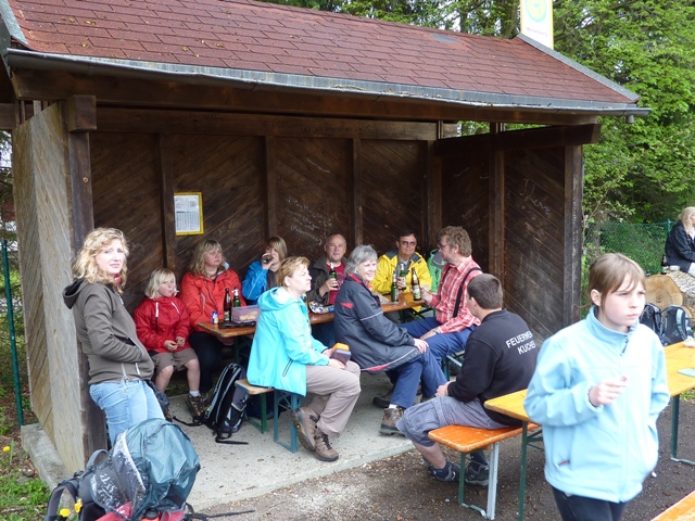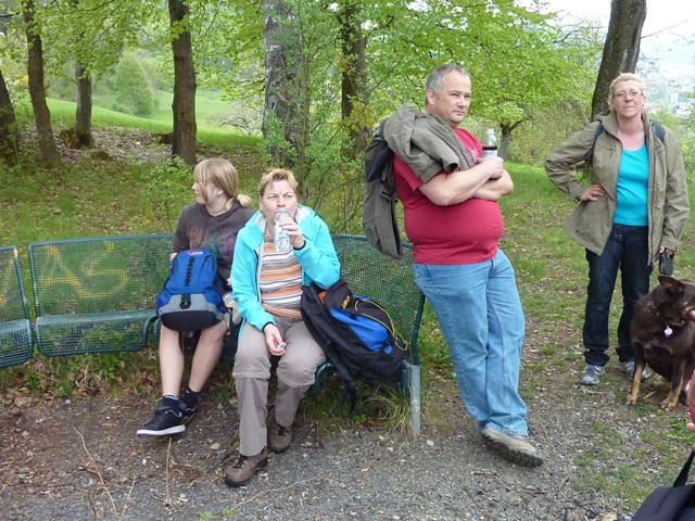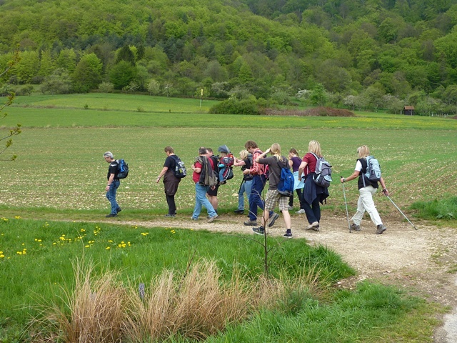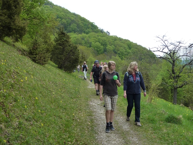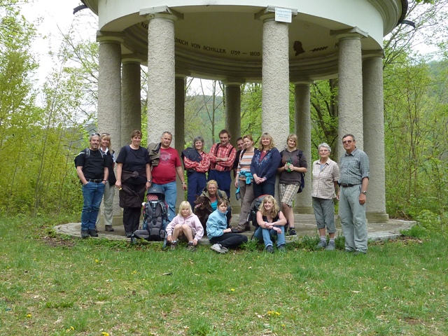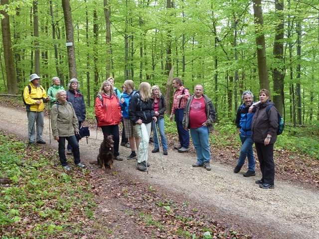 Die Wettervorhersage war zum Wandern nicht gerade einladend, dennoch konnte Siegfried Eberle bei der diesjährigen 1.Mai Wanderung des „Frohsinn’s“ knapp 20 Teilnehmer am Marktplatz in Kuchen begrüßen.   Gut gelaunt ging es bei schönem und trockenem Wetter nach Altenstadt los, nun weiter der Fils entlang zum Schillertempel wo auch die erste Rast gemacht wurde. Interessant war die Geschichte zu erfahren wie der Schillertempel nach Bad Überkingen kam. Mit bedauern wurde festgestellt, man kennt sich in der Ferne oft besser aus wie in der nahen Umgebung. Mit neuem Wissen und kleiner Stärkung ging es weiter Richtung Bad Überkingen. Am „Zick-Zack Weg“ zum Jungfrauenfelsen hieß es nun Höhenmeter zu machen. Oben angekommen war erst mal ausschnaufen angesagt. Frisch erholt ging’s von Aussichtsfels zu Aussichtsfels weiter zur Hausener Wand. Da es nun leicht zu regen begann entschied man sich kurzerhand den Rastpunkt von der Oberböhringer Heide an einen überdachten Platz zu verlegen. Die Entscheidung fiel auf das Bus-Warte-Häuschen am „Berghaus St.Michael“. Hier wurde auch das „Verpflegungs-Fahrzeug“- diesmal gesteuert von Dominik Taufer- hinbeordert und gestaltete fix das „Wartehäuschen“ zum „Rasthäuschen“ um.