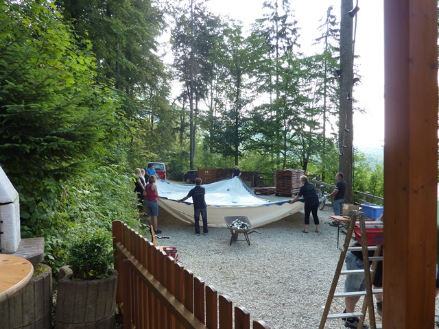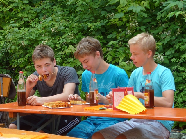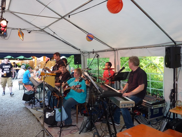 Der Sonntagmorgen begann mit einem musikalischen Frühschoppen bei Weißbier, Weißwurst und leckeren Maultaschen. Dazu gab es die Musik von der „Marmeladenglas-Kapelle“, besser bekannt als „Xälshäfales Combo“. So wie ihr Name, so auch ihre Musik. Hier wurde fast jedes bekannte Lied aufs schwäbische umgeschrieben und in witziger Weise vorgetragen, dass manchmal auch kein Auge trocken blieb.