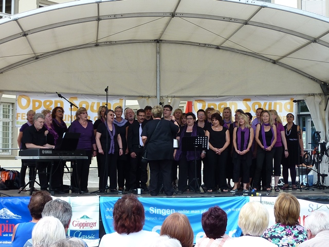 New Age präsentierte sich bei Traumwetter auf einer gut aufgestellten Bühne in der Stauferstadt Göppingen. Dabei waren acht weitere hochmotivierte Chöre und viele Passanten, die zuhörten und mitsangen.