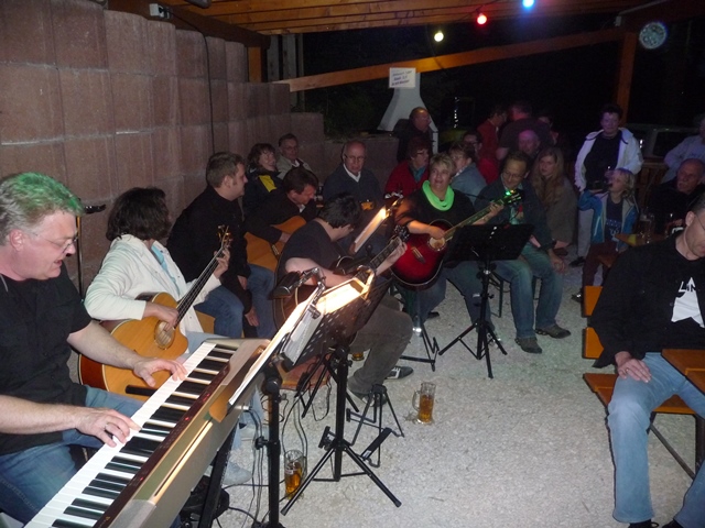 Dazu gab es gekühlte Getränke und wie es sich für ein Fest mit vielen Sängern gehört, Musik und Gesang. Da traf es sich natürlich gut, dass die Musiker der Aichelberger Band „The Falling Rocks“ mit unter den Gästen waren. Zusammen mit ihrer Frontfrau und Chorleiterin Claudia Mann wurde dann bis in den späten Abend gesungen, musiziert, gelacht, getanzt und gefeiert.