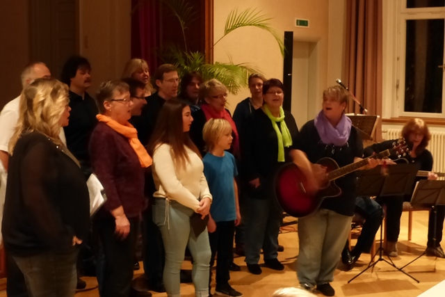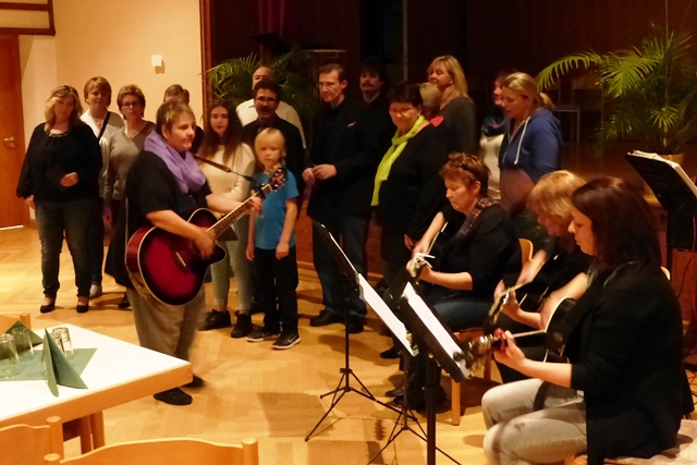 Nachdem Vorsitzender Uwe Lövesz seine Gäste begrüßte und sich jeder am leckeren Buffet gestärkt hatte, legte sich auch schon unser altbewährter Entertainer Werner mächtig ins Zeug und brachte die Gäste zum Schunkeln und Tanzen. Der Auftritt von unserem Chor New unter Akustikbegleitung von den Gitarrenfreunden Salach löste natürlich wie gewohnt große Begeisterung bei den Zuhörern aus. Dass sie aber auch neben Singen noch Show machen können, bewiesen sie bei ihrem lustig vorgetragenen Handpuppenstück.