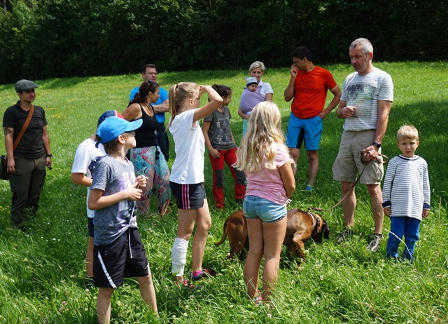 Mit dem Förster und dem Jäger gingen einige Kinder und auch Erwachsene auf eine interessante Führung durch den Wald. Die Kinder wurden aktiv beim Suchen nach Tieren mit einbezogen und konnten dabei ihre Kenntnisse unter Beweis stellen. Doch schnell wurde ihnen klar, wie umfangreich die schöne Tierwelt und wie spannend die Aufgaben der Förster und Jäger ist. Für ihr tolles Mitmachen wurden die Kinder danach im Waldheim mit einem Eis belohnt.