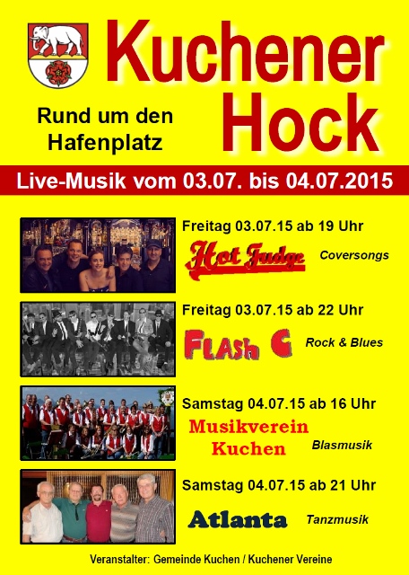 Den "Gemütlichen Hock" am Samstag, den 04.07.2015 wird von der Gemeinde Kuchen und weiteren Kuchener Vereinen veranstaltet.