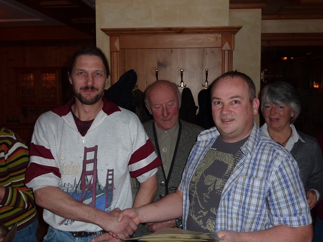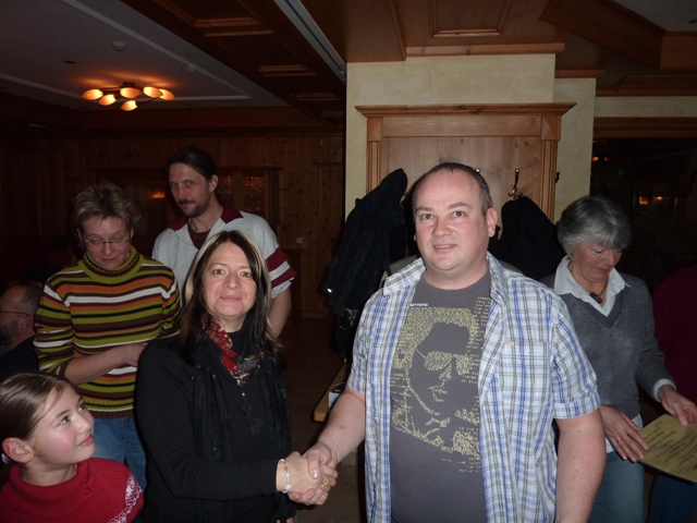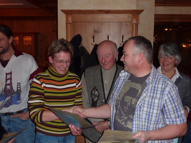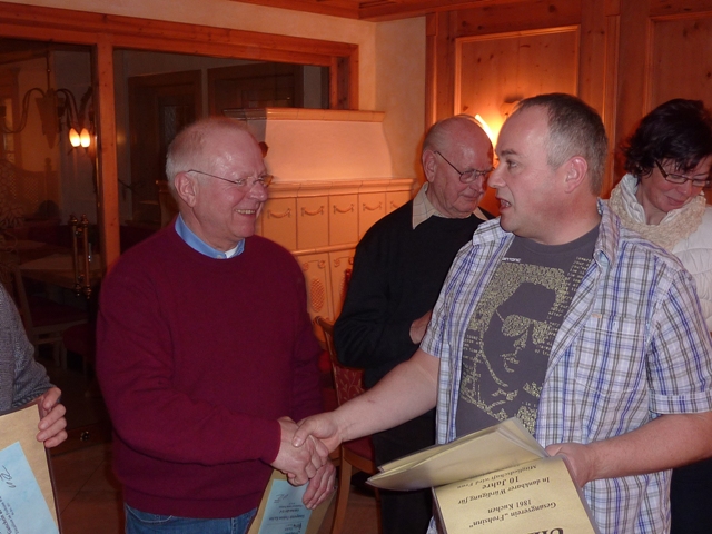 Zuvor blickte er in seinem Bericht auf ein sehr arbeitsintensives Jahr zurück. Der musikalische Höhepunkt war zweifelsfrei das Benefizkonzert in der Heilig-Kreuz-Kirche in Kuchen zugunsten der kostspieligen Renovierung der Kirche. Sehr erfreulich war auch die Gründung eines Projektchors mit dem Partnerverein „Germania“ für das gemeinsame Jubiläumskonzert. Von geselligen Höhepunkten wie die Skiausfahrt, Familienabend, Maiwanderung, Teilnahme am Kuchener Hock, Lampionfest, Adventsmarkt, Volksradfahren und Volkskegeln berichtete der Vorsitzende, aber auch von viel Vorbereitungsarbeit für das bevorstehende 150-jährige Jubiläum 2011. Darauf folgte ein Ausblick auf das Festprogramm im Jubiläumsjahr. Hierfür gab er der Versammlung folgende Termine bekannt: 14.05. „Die Jungen Zillertaler“, 02.07. „Albfetza“, 03.07. „Die Korni’s“, 29.10. „Die Jungen Tenöre“. Uwe Lövesz verwies darauf, dass es hierzu auf der neu gestalteten Homepage www.frohsinn-kuchen.de, neben Informationen auch bereits Eintrittskarten zu erhalten sind. Im Jubiläumsjahr werden wir für unsere Großveranstaltungen, die Mithilfe jedes einzelnen der 221 Mitglieder benötigen, unterstich Uwe Lövesz. Abschließend bedankte er sich bei allen Spendern und Gönnern des Gesangvereins Frohsinn, bei der Gemeinde Kuchen, allen voran Herrn Bürgermeister Rößner.